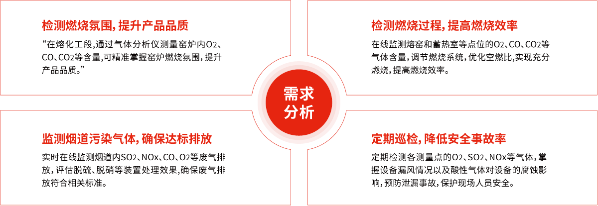工業(yè)窯爐是工業(yè)生產(chǎn)中的核心熱工設(shè)備,同時也是工業(yè)領(lǐng)域的“耗能大戶”。運(yùn)用氣體分析技術(shù)對窯爐燃?xì)鉄嶂?、爐內(nèi)氣氛、殘氧量、煙氣組分等進(jìn)行分析,可有效評價窯爐燃燒狀態(tài),合理調(diào)節(jié)熱工參數(shù),優(yōu)化空燃比,提高燃燒效率,減少燃?xì)庥昧?促進(jìn)窯爐節(jié)能減排,助力綠色發(fā)展。